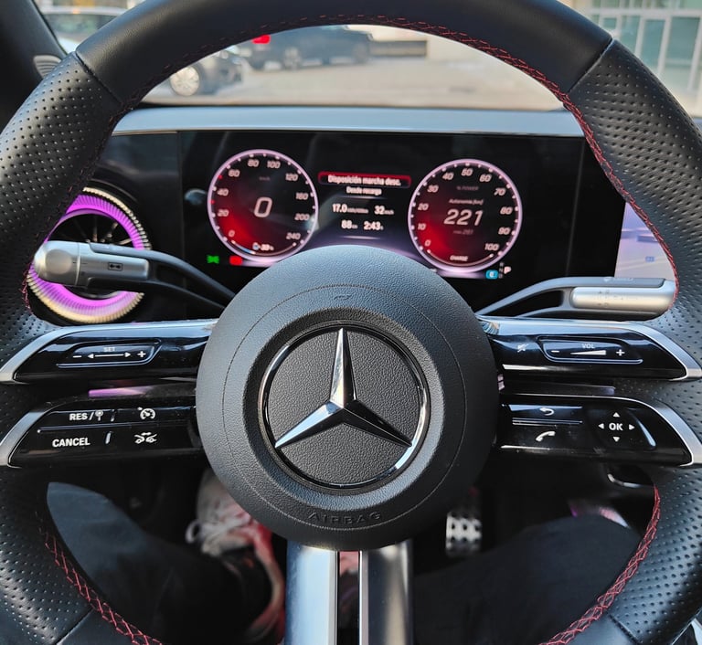 Y por último vamos con dos de las cosas que más me han gustado, la dirección y la suspensión. La dirección es muy precisa a pesar de no ser para nada dura, ni siquiera en el modo Sport. El coche va justo por donde quieres y aunque no sea la dirección más informativa del mundo, creo que está en un punto intermedio perfecto entre comfort y dinamismo. Lo mismo me pasa con la suspensión, que sin ser firme controla bastante bien los movimientos del coche, un coche de nada más y nada menos que dos toneladas. Los resaltos por ciudad no son un problema y el balanceo en carretera tampoco. El equilibrio perfecto, que creo que es lo que busca el comprador de Mercedes, comodidad sin renunciar a la precisión.