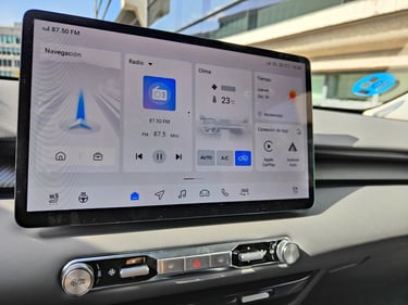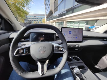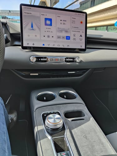 Al igual que en el exterior, en el interior no busca impresionar ni resaltar simplemente cumplir. Presiden el salpicadero dos pantallas, un cuadro de mandos digital poco personalizable y de visualización simple y una pantalla central de buen tamaño. Como hemos visto en otros modelos de MG el software del sistema de infoentretenimiento no es el mejor del mundo y echo en falta una mayor velocidad de respuesta, aunque los menús si son simples e “intuitivos”. Como punto positivo mantiene parte de los botones físicos para la climatización, además del cambio en la consola central donde también encontramos una zona de carga inalámbrica para móviles.