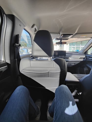 Nos ponemos al fin en el puesto de conducción y la sensación se corresponde con la imagen que busca dar el modelo, te sientes alto, en un coche grande y con poderío. Los asientos son cómodos sin recoger especialmente bien, tampoco creo que lo pretendan, y al menos en esta versión intermedia son eléctricos y con regulación lumbar además de calefactables.