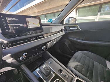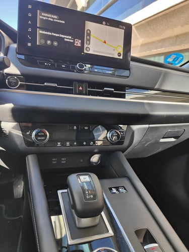 El salpicadero preside por dos pantallas, una central de buen tamaño para el sistema de infoentretenimiento y el cuando de instrumentos totalmente digital, este no es excesivamente personalizable, pero es intuitivo y sus controles son sencillos desde los botones físicos del volante. Y habéis leído bien físicos, una de las características de este interior, para mi gusto muy acertada, es la presencia de botones y ruedas físicos, tanto para el control de la climatización, los modos de conducción, la activación del one-pedal o del modo exclusivamente EV. Es algo que consiga un nivel de ergonomía muy alto y una mayor facilidad de acceso a todos los controles y mandos. Es algo que comparte con el interior del Nissan X-trail y que me parece un acierto total, en un mundo donde cada vez encontramos un enfoque más minimalista y que agrupa todos los controles en las pantallas.